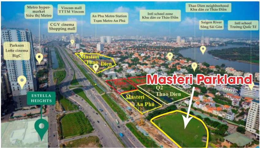 Masteri Parkland tọa lạc tại mặt tiền đường Xa Lộ Hà Nội, thuộc phường An Phú, Quận 2. Liền kề với phường Thảo Điền, và các căn hộ chung cư: The Vista Capitaland, Masteri An Phú, Gateway Thảo Điền,…